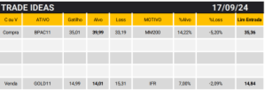 A confiança dos investidores globais melhorou em setembro pela primeira vez desde junho devido ao otimismo em relação a um pouso suave e à probabilidade de cortes na taxa de juros pelo Federal Reserve, segundo uma pesquisa do BofA com gerentes de fundos publicada nesta terça-feira. De acordo com a pesquisa, as alocações em dinheiro caíram para 4,2%, com os investidores também migrando de ativos cíclicos para ativos sensíveis a títulos, levando as alocações em serviços públicos ao nível mais alto desde 2008. A exposição a commodities, por sua vez, caiu para uma mínima de sete anos. Sinais de desaceleração no mercado de trabalho dos Estados Unidos e uma deterioração em outras métricas econômicas levaram os investidores a aumentar as apostas em um corte grande nos juros na reunião de política monetária do Fed nesta semana. As ações atingiram máximas recordes e os preços dos títulos de renda fixa também avançaram acentuadamente à medida que os investidores precificaram a perspectiva de alívio de vários anos de taxas de juros elevadas. (Reuters)