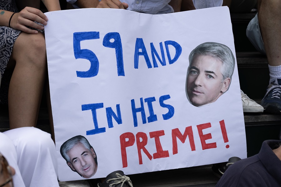 Dito isso, Ackman também conquistou alguns apoiadores, incluindo um que trouxe um cartaz feito à mão, com duas fotos flutuantes da cabeça de Ackman e o slogan: “59 e no auge!”