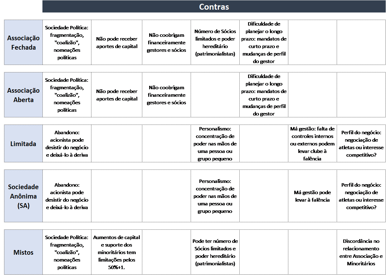 Se o clube precisa de dinheiro para não acabar e terá que virar empresa, ou se é uma associação com regras claras e entendimento de suas estruturas, ou se prefere abrir capital para crescer, tudo isso é secundário. Se antes disso não estiver claro para quem comandar os clubes o que deve ser feito, então os riscos se tornarão realidade e os benefícios ficarão como registro de parece, como ideias jogadas ao vento, ou esquecidas em alguma aba do site desatualizado.