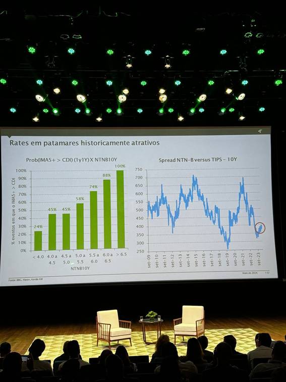 Justamente foi esse risco que fez com que Luis Stuhlberger, gestor do fundo Verde e um dos maiores financistas do Brasil, vendesse sua posição no ativo – que chegou a ser a mais importante da casa recentemente. Ele fez uma “troca”: tirou o título publico brasileiro que paga taxa de juro real e “comprou” o mesmo ativo, só que nos EUA (onde esses papéis são chamados de “tips”).