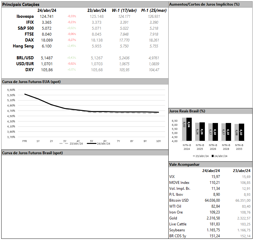 Nos próximos dias temos três coisas para olhar. Duas vem de fora, uma daqui mesmo. Vamos por partes. Amanhã, temos PCE. Se você ainda não sabe o que é PCE, você não se enquadra na alcunha de “leitor atento”, mas vamos lá: é um índice de inflação dos EUA. Correção: é O índice de inflação dos EUA. É exatamente para ele que o Fed está olhando quando decide cortar (ou não) os juros. Mais precisamente, é para o núcleo do PCE. A meta de inflação por lá, de 2%, está olhando exatamente para esse núcleo, que tira da conta os dados mais voláteis (e menos influenciados por juros) como alimentos e energia. Em fevereiro de 2022, esse cara estava em 5,4%. Dois anos depois, ele roda em 2.8%. Parece fantástico, mas ele estacionou ao redor de 3% nos últimos 4 meses, e o Fed não gostou. Mudou o tom e levou a precificação do mercado de “corte em março/24” para “corte? que corte?”.