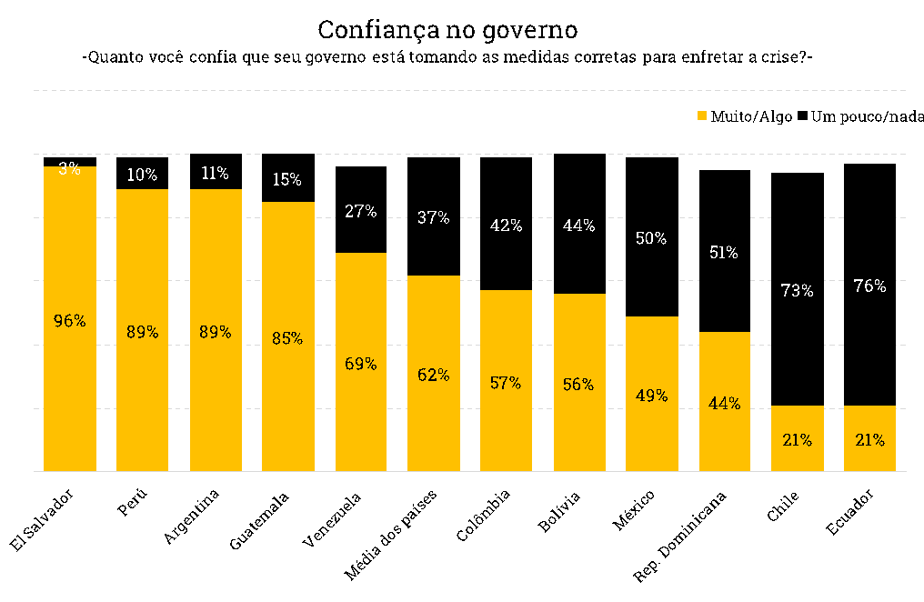 Isso mostra que a maneira pela qual os diferentes governos abordam a pandemia têm impacto direto na imagem de sua gestão. Nesse sentido, pode-se ver como, segundo o estudo de Mitofsky, a confiança que as pessoas têm no governo em cada país é reproduzida quase idêntica à aprovação da figura presidencial no contexto do coronavírus.