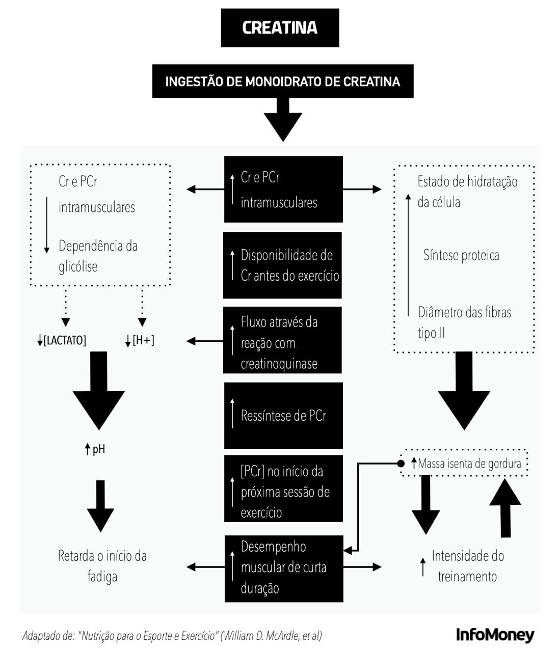 É um composto natural produzido pelo organismo a partir dos aminoácidos arginina, glicina e metionina, sendo armazenada predominantemente nos músculos esqueléticos. Também está presente em alimentos como carnes vermelhas, peixes e aves, além de ser encontrada em suplementos alimentares, geralmente como monoidrato de creatina.