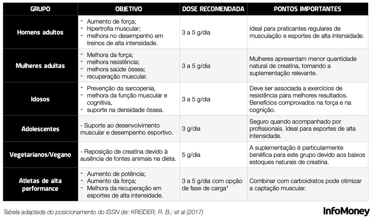 A creatina é um dos suplementos mais estudados e recomendados tanto para melhorar o desempenho esportivo quanto para promover saúde em diversos contextos. Com benefícios comprovados para atletas, idosos, vegetarianos e até adolescentes, suas doses variam de acordo com o objetivo e as necessidades específicas de cada grupo.