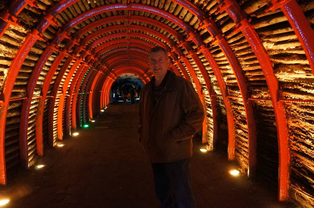 Explico: a catedral, inaugurada em 1995 , foi construída aproveitando uma grande mina de sal. Tornou-se a grande maravilha da Colômbia, visitada por milhares de turistas. Antes de chegar ao fundo do coração salgado desta obra prima do gênero humano, fui sendo instigado. Em vários pontos, o jogo de luz e sombras, misturado a imagens de arcanjos de sal olhando para você , cria um ambiente mágico, místico!