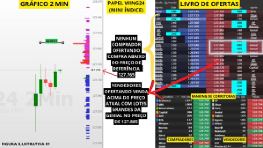Agora no exemplo 3 você já consegue observar que os alvos de 128.000 e 128.100 dos respectivos vendedores Clear e Necton foram consumidos. Agora basta esperar uma nova oportunidade se confirmar em sua tela operacional.