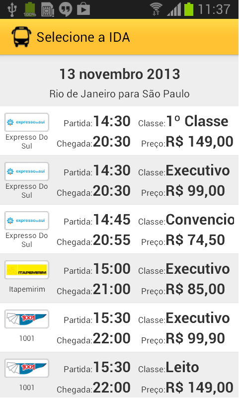 O usuário escolhe o trajeto (apenas ida ou ida e volta), o melhor horário para embarque e a poltrona em que viajará selecionando o assento. O pagamento também pode ser realizado pelo aplicativo.