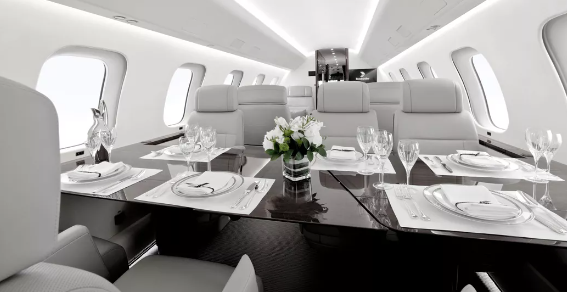 Entre os luxos disponíveis estão uma suíte master com cama de casal, dois banheiros completos, uma cozinha gourmet e uma área de descanso para a tripulação. Os assentos Nuage, exclusivos da Bombardier, oferecem um sistema de inclinação que simula a posição de gravidade zero, o que garante maior conforto em voos longos.