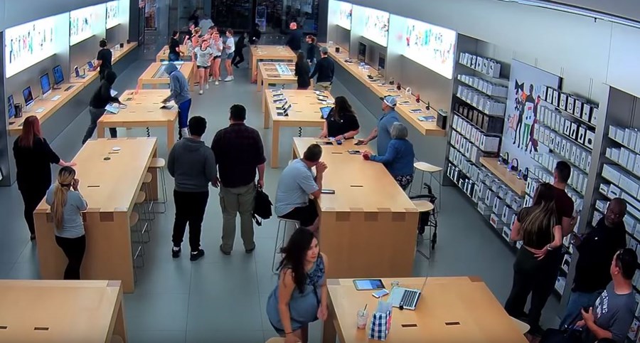 De acordo com o portal Gizmodo, o caso aconteceu na cidade de Fresno, na Califórnia, e o valor roubado foi em aparelhos como iPhone e MacBooks. Um vídeo da câmera de segurança mostra os homens entrando na loja, andando entre as mesas de exposição e pegando diversos aparelhos enquanto os vendedores e clientes ficam parados, sem reação.