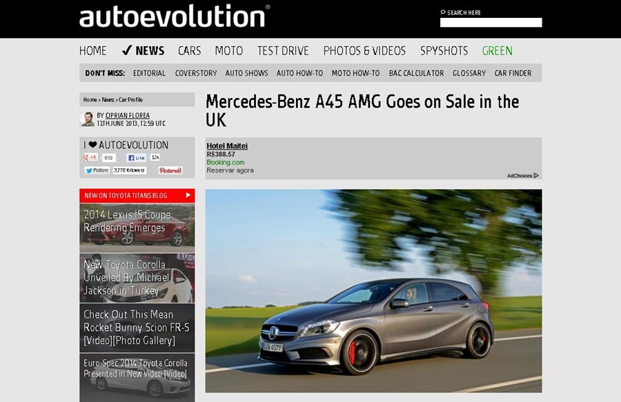 SÃO PAULO – As primeiras entregas do carro Mercedes-Benz A45 AMG estão previstas para acontecer em agosto e o veículo já pode ser encomendado no Reino Unido por £ 37.845 (R$ 126 mil, de acordo com a cotação do Banco Central do Brasil do dia 11 de junho de 2013).