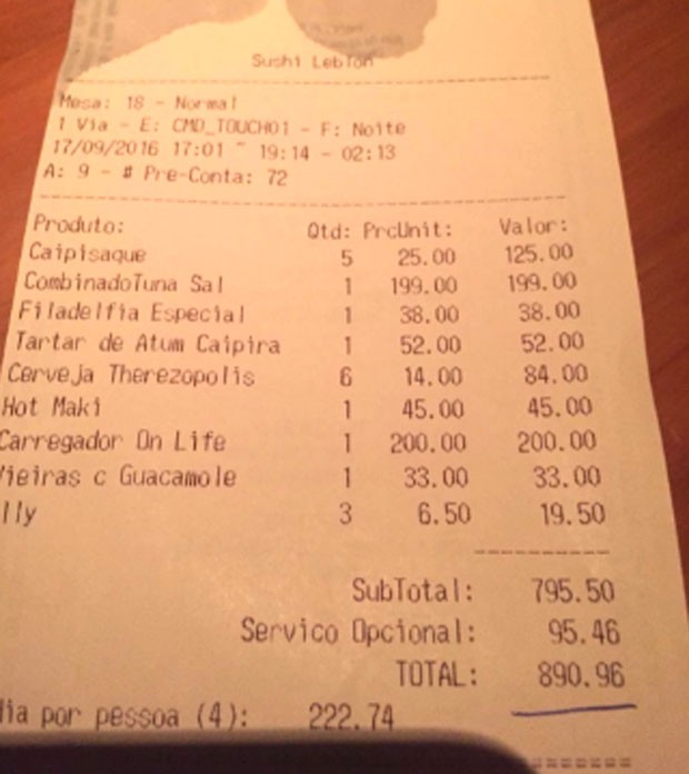 De acordo com o G1, uma cliente pediu para recarregar o celular em uma tomada na cozinha, ao que um funcionário ofereceu um carregador portátil emprestado. O problema veio na hora de pagar a conta: estava R$ 200 mais cara e tinha na lista o item “Carregador On Life”.