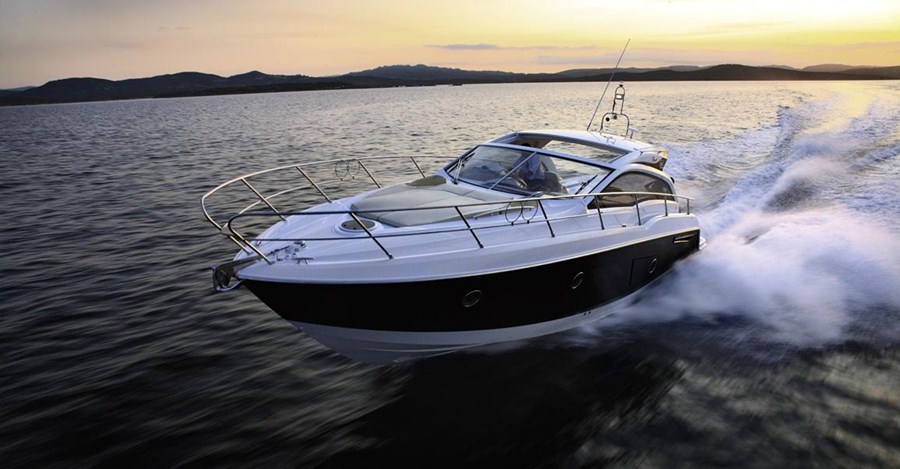 A embarcação possui 370 CV, comprimento total de 10,22 metros, interior e designer Sarrazin Design.