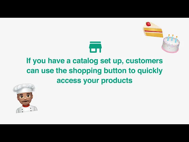 Com o botão de compras, o usuário saberá imediatamente que aquele negócio possui um catálogo e poderá checar os produtos disponíveis além de iniciar uma conversa sobre um item que o interesse com apenas um toque.