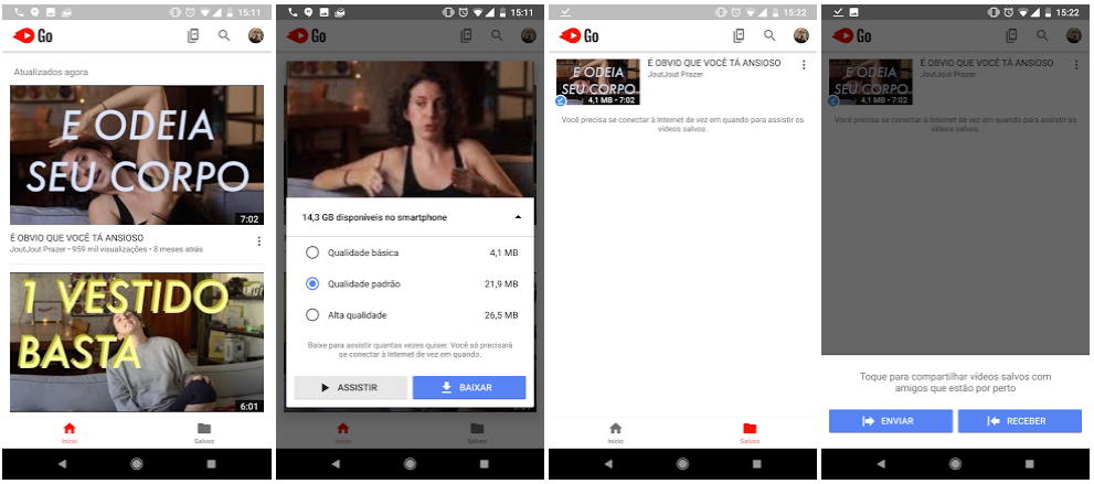 O app do YouTube Go está disponível para download apenas na Play Store e não há previsão para lançamento em iOS. Além do Brasil, recebem hoje a novidade 130 países, sendo Argentina, México e Colômbia na América Latina e outras localidades na Ásia.