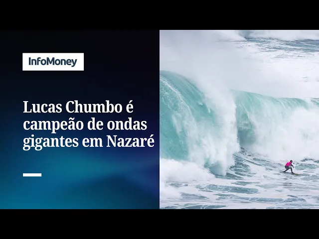 O brasileiro Lucas “Chumbo” Chianca, natural de Saquarema, no Rio de Janeiro, sobreviveu a duas quedas brutais para conquistar mais um título do Nazare Big Wave Challenge em ondas enormes e limpas em Portugal no sábado (13).