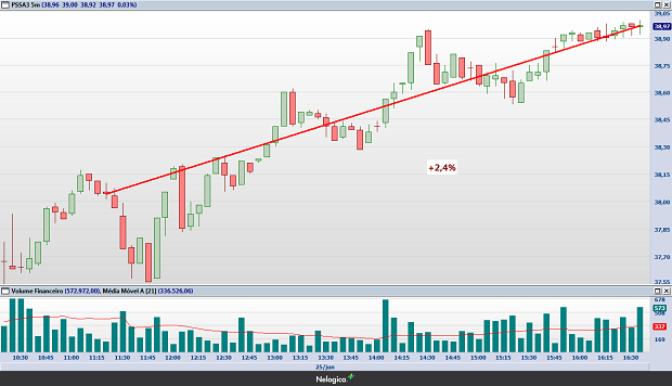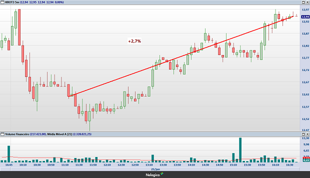 Confira os gráficos de 5 minutos das ações que fugiram do sentimento negativo do mercado em dia de “sell off” na Bolsa: