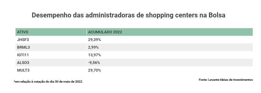 O compilado da Levante mostra que a Bolsa também gosta mais das administradoras dos shoppings de luxo. No acumulado do ano, as ações de Aliansce Sonae e brMalls, com maior exposição a lojas de vestuário de baixa e média renda, tiveram os desempenhos mais fracos entre as companhias do setor.