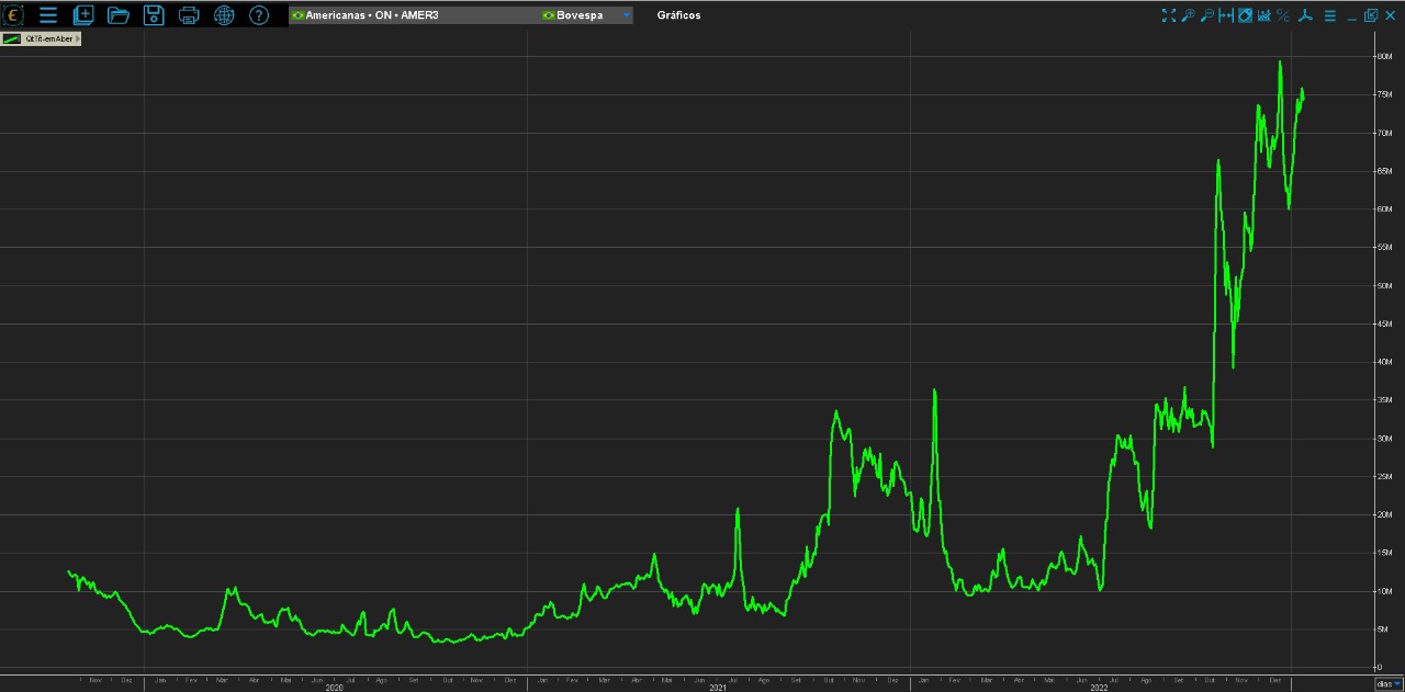 Um levantamento da TC Economatica vai na mesma linha, destacando o grande número de ações alugadas da Americanas e acima do setor, indicando um posicionamento de investidores apostando na queda das ações às vésperas da divulgação do fato relevante. O número de ações alugadas bateu 75 milhões, subindo consideravelmente desde setembro.