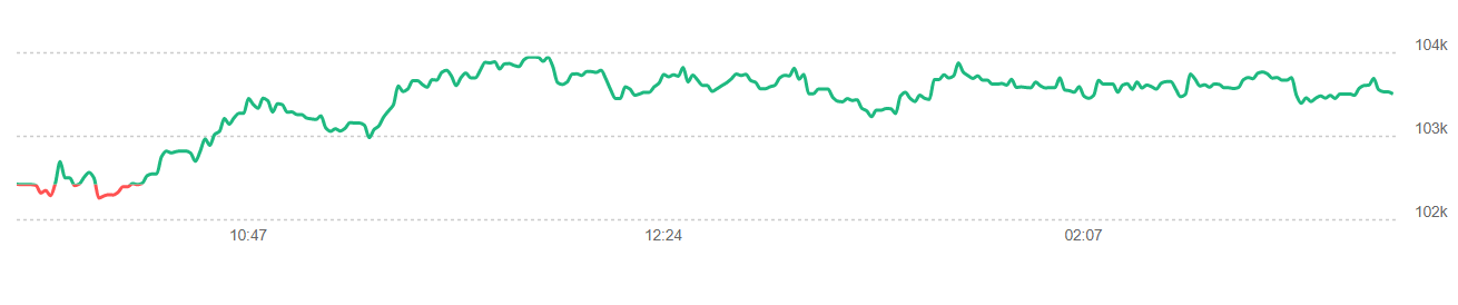 11h25 – Ibovespa renova máxima, com alta de 1,19%, a 103.643 pontos