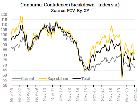 O índice registrou queda de 1,4 ponto ante outubro e teve o menor valor desde abril.