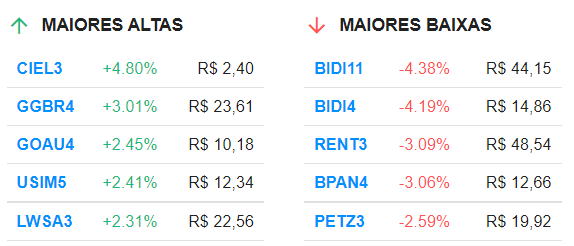 10h46 – Confira as maiores altas e maiores baixas do Ibovespa