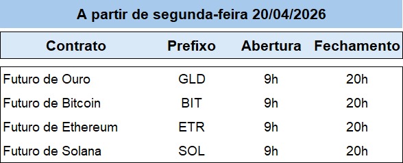 Com a mudança, esses ativos poderão ser negociados das 9h às 20h, totalizando 11 horas contínuas de operação.