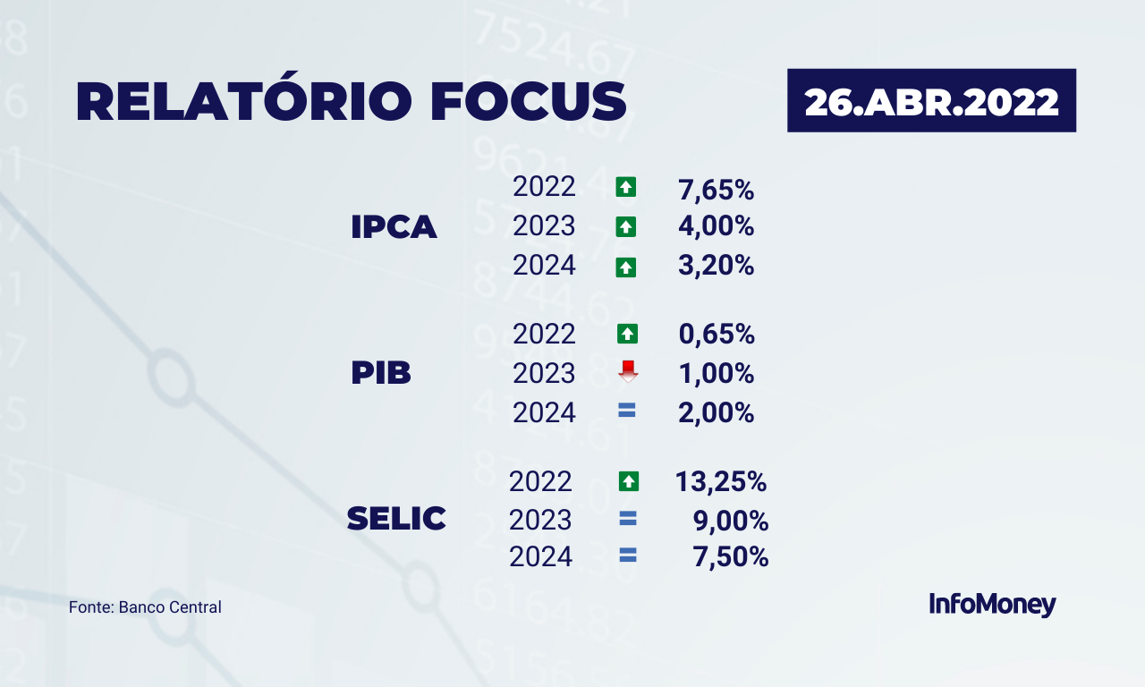 Veja abaixo todas as projeções do Relatório Focus de 22 de abril: