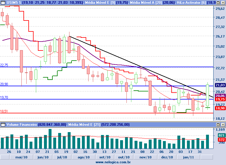 Com o salto de 10,4% na última semana, as ações PNA deixaram para trás sua LTB (Linha de Tendência de Baixa) de curto prazo e abriram um setup de reversão de tendência, após fecharem acima da média móvel de 20 dias e com o HiLo Activator apontando compra.