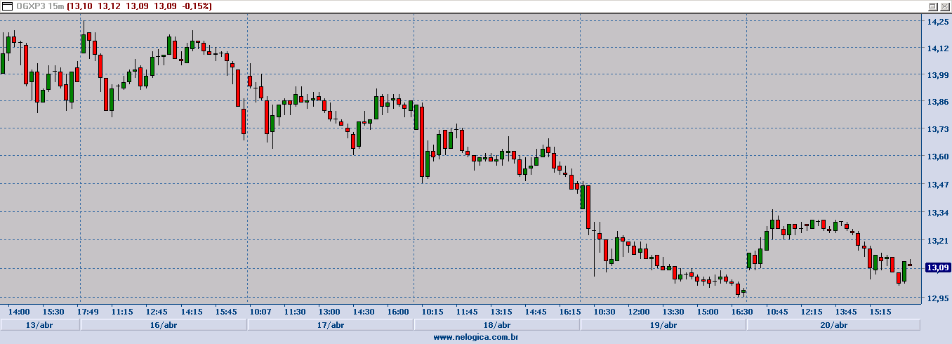 Contudo, caso venham a respeitar o suporte e superar a região dos R$ 13,15, o grafista projeta novas altas. Nesse cenário, é possível que OGXP3 repique em busca das resistências dos R$ 13,24 e R$ 13,35.