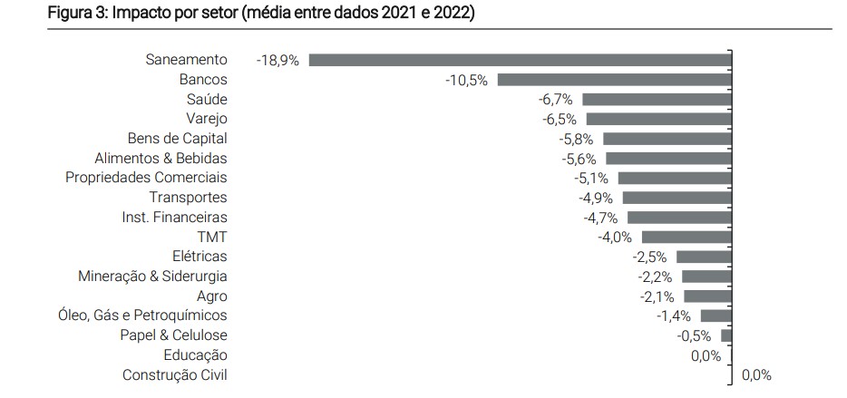 Eles apontam ainda que os setores mais impactados com o possível fim do JCP são: Saneamento, Bancos, Saúde, Varejo e Bens de Capital.
