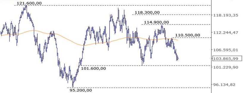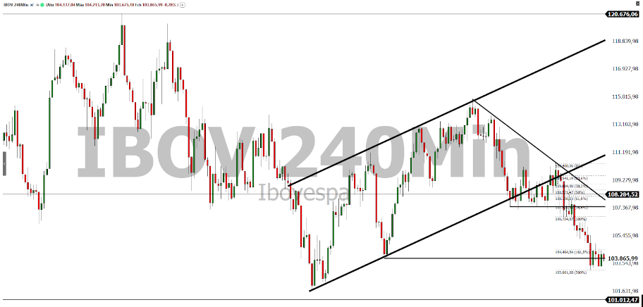 Entretanto, uma vez que a tendência de baixa no curto prazo seja mantida, o primeiro suporte está em 101.600 pontos.