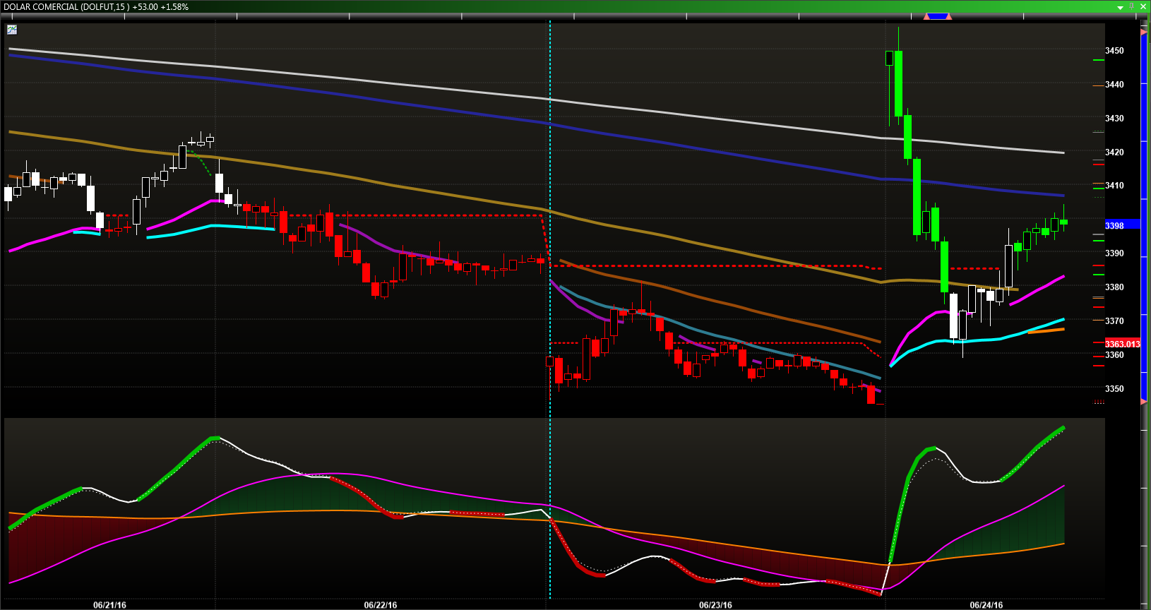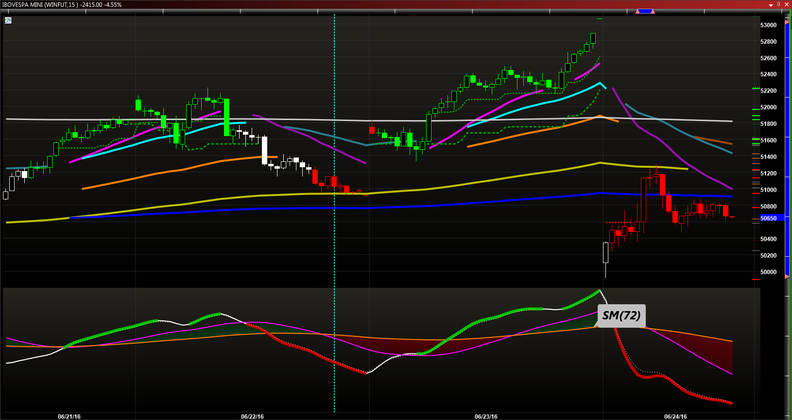 Da mesma forma como aconteceu em agosto do ano passado no que convencionou-se chamar de “Black Monday” chinesa, o Ibovespa Futuro abriu em forte queda, sofrendo uma gigantesca pressão vendedora e depois começou a amenizar as perdas. Em 2015, esse movimento foi de uma queda de 6% para uma de 3% no fechamento, enquanto hoje a queda foi de 5,5% para 4% com seis horas de pregão pela frente ainda.