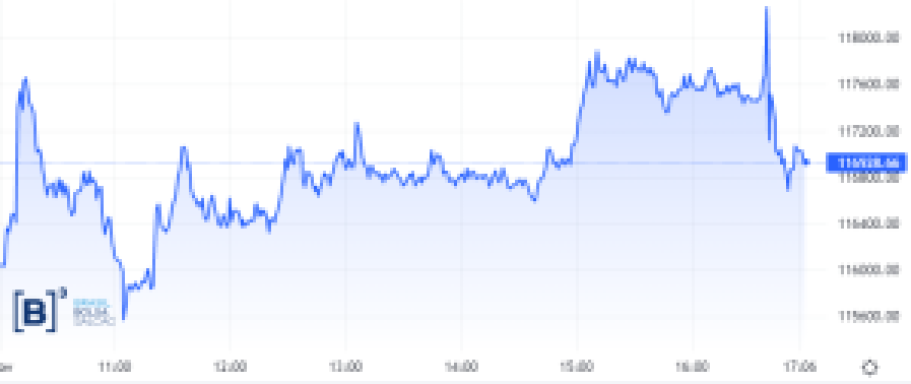 Ibovespa fecha, preliminarmente, com alta de 0,86%, aos 117.030,91 pontos
