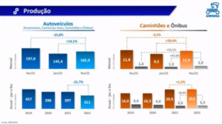Já os volumes de minério de ferro caíram 20% A/A, devido à produção de aço chinesa mais fraca e oferta restrita. As exportações de aços planos, longos e semi-acabados aumentaram na comparação anual, enquanto as importações foram menores em fevereiro.