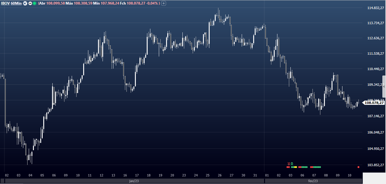 Ibovespa Futuro (INDFUT) sobe 0,12%, aos 108.235 pontos