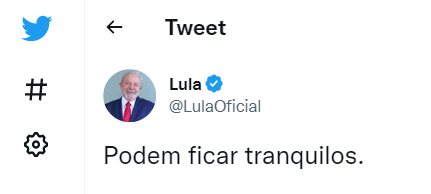 - Por fim, ao final do dia, Lula afirmou que o “mercado fica nervoso à toa”, após forte queda da Bolsa e disparada do dólar.