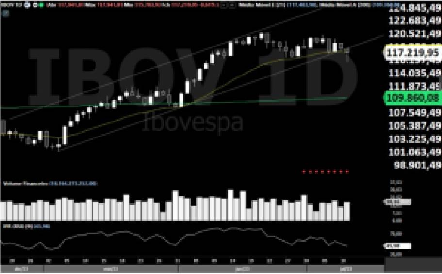 Ibovespa fechou ontem com queda de 0,61%, aos 117.219,95 pontos