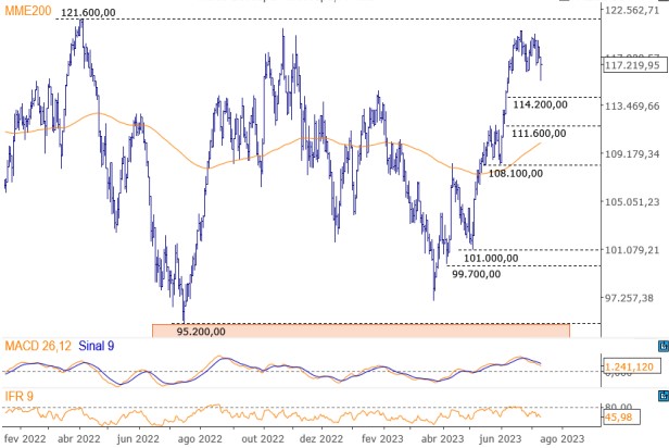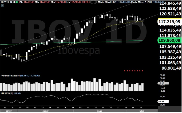Ibovespa fechou ontem com queda de 0,61%, aos 117.219,95 pontos