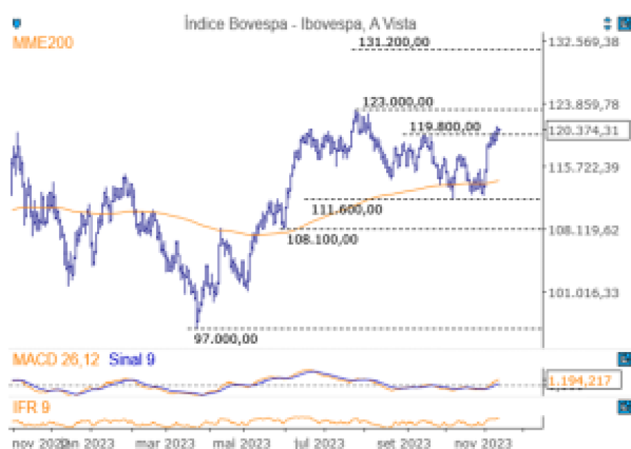 Ibovespa fechou ontem com queda de 0,13%, aos 120.410,17 pontos