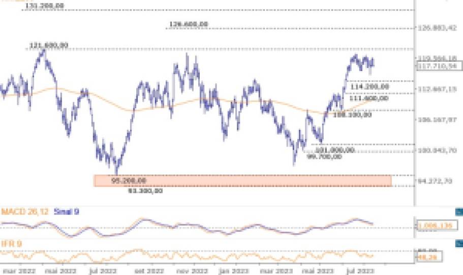 Ibovespa fechou sessão de sexta-feira (14) com queda de 1,30%, aos 117.710,54 pontos