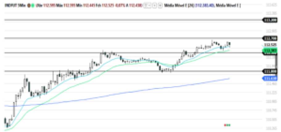 Ibovespa Futuro fecha com alta de 0,40%, aos 112.970 pontos; e dólar futuro, com alta de 1,68%, a R$ 5,2000