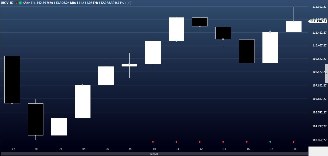 Confira a evolução do IBOV durante a semana, mês e ano: