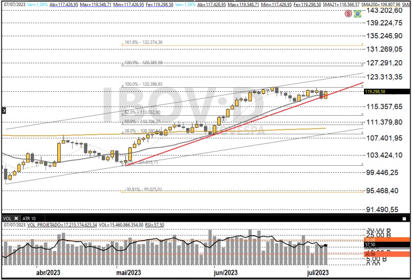 Com a queda atual de 0,23% do Ibovespa, o índice está negativo em julho, com 0,12%; na semana, mais 0,20%