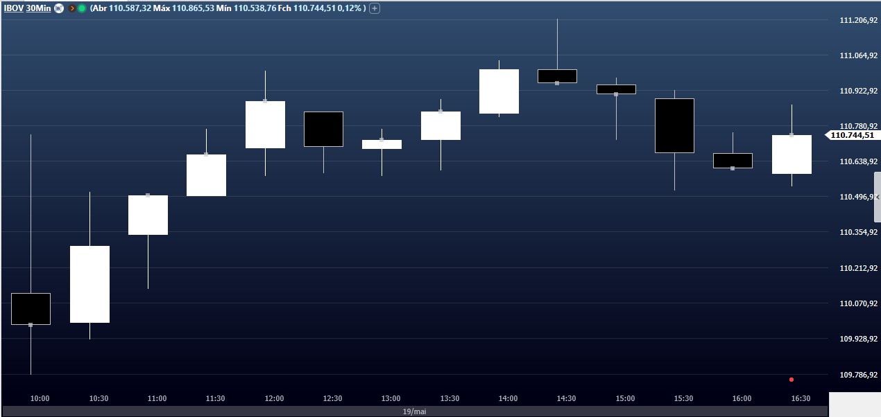 Ibovespa fechou ontem com alta de 0,59%, aos 110.108,46 pontos