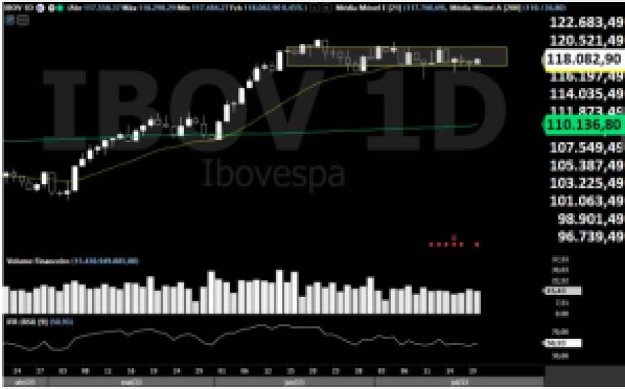 Ibovespa fechou ontem com alta de 0,45%, aos 118.082,90 pontos