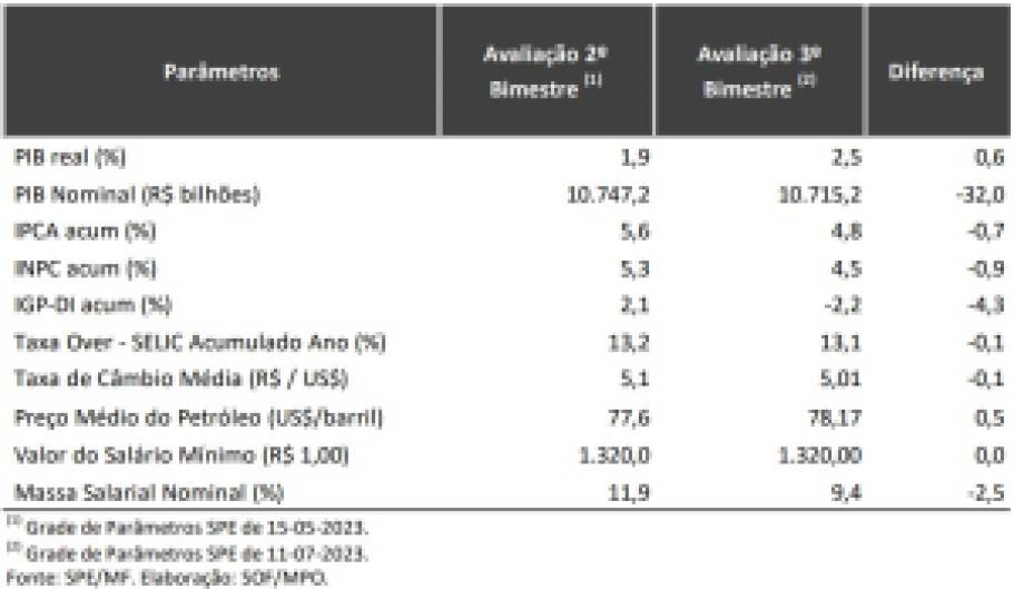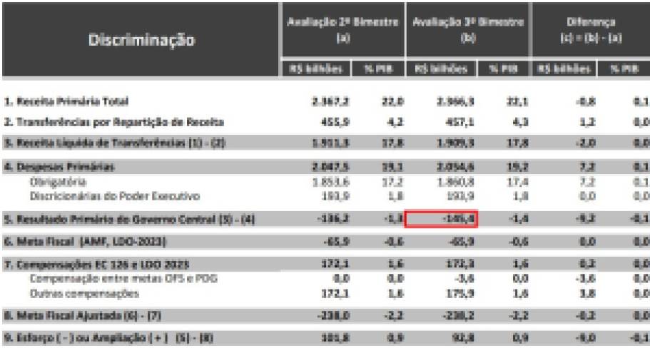 No contexto macro, o governo revisou a projeção do resultado primário de 2023 para um déficit de R$ 145,4 bilhões, o que representa um aumento de 1,3% para 1,4% em relação ao PIB. Mas o secretário de Orçamento Federal do Ministério do Planejamento, Paulo Bijos, reiterou que o objetivo da equipe econômica é levar o déficit a algo em torno de 1% do PIB e, para 2024, a meta é zerar o rombo nas contas.