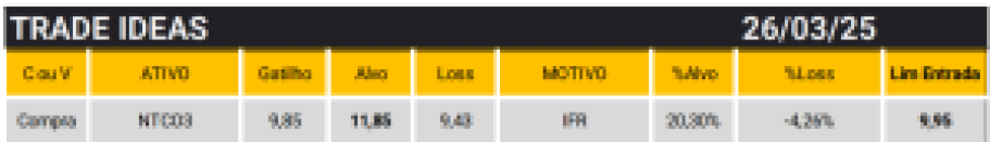 Amanhã, o campeonato segue com Relatório de Política Monetária do Banco Central do Brasil, além do IPCA-15 de março. Nos EUA, tem leitura final do PIB do 4T24 e dados adjacentes. Todo mundo espera que os resultados não sejam nada dolorosos, não como se viu ontem em Buenos Aires. (Fernando Augusto Lopes)