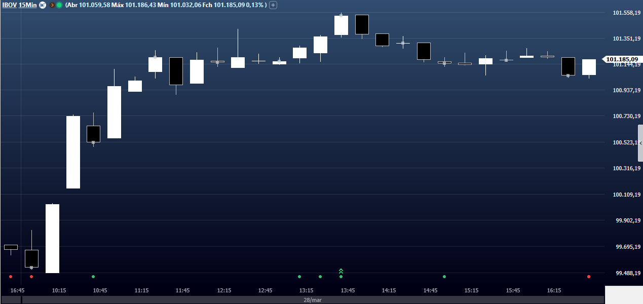 Foi a segunda sessão seguida no positivo, algo que não acontecia há três semanas, nos dias 3 de março (mais 0,52%) e 6 de março (mais 0,80%). Desde então apenas três sessões fecharam no azul até as duas seguidas de agora (mais 0,92% na sexta, 24).