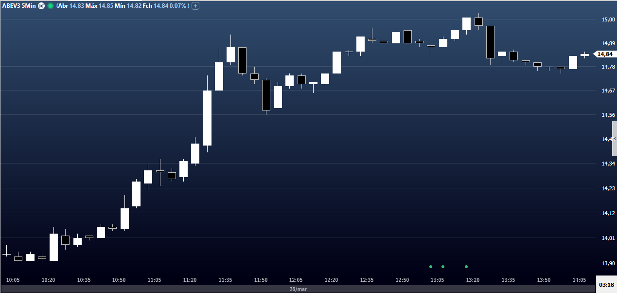 | Ambev | ABEV3 | 4,74 | 14,59 | 0,66 | 75.790 | 5,04 | 8,96 | 0,48 |