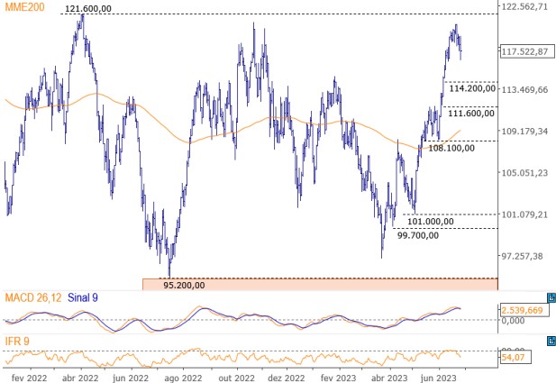Ibovespa fechou ontem com queda de 0,61%, aos 117.522,87 pontos